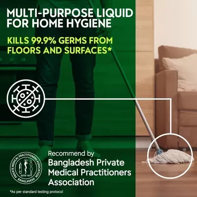 Highlights ● Multi-purpose liquid for home hygiene. ● Kills 99.9% germs from floors and surfaces ● Lime fresh fragrance Description Dettol disinfectant liquid is a modern, multi-purpose hygiene liquid with Lime fresh fragrance. It is specially formulated to meet a wide range of uses and gives you and your family the trusted Dettol Protection everyday. Recommended dilution to protect you and your family from germs. Usage direction: For Floor Cleaning use 1 capful in 1 litre of water. For Kitchen & Bathroom Cleaning use 1 capful in 1 litre of water. For Laundry Disinfection use 1 capful in 1 litre of water in the last rinse. For Refrigerator use 1 capful in 1 litre of water. Note: 1 capful = 15ml Safety Direction: Keep out of reach of children. Do not use it undiluted. For external use only. Avoid contact with eyes. In case of accidental contact with eyes, wash eyes immediately with plenty of water. If swallowed, seek immediate medical advice. About the manufacturer: Dettol Disinfectant Liquid is made in Bangladesh by Reckitt Benckiser Bangladesh PLC. Dettol is a registered Trademark of Reckitt Benckiser PLC headquartered in England. The first Dettol product was manufactured in the year 1932 in England. Dettol is now the world’s most trusted germ kill brand.