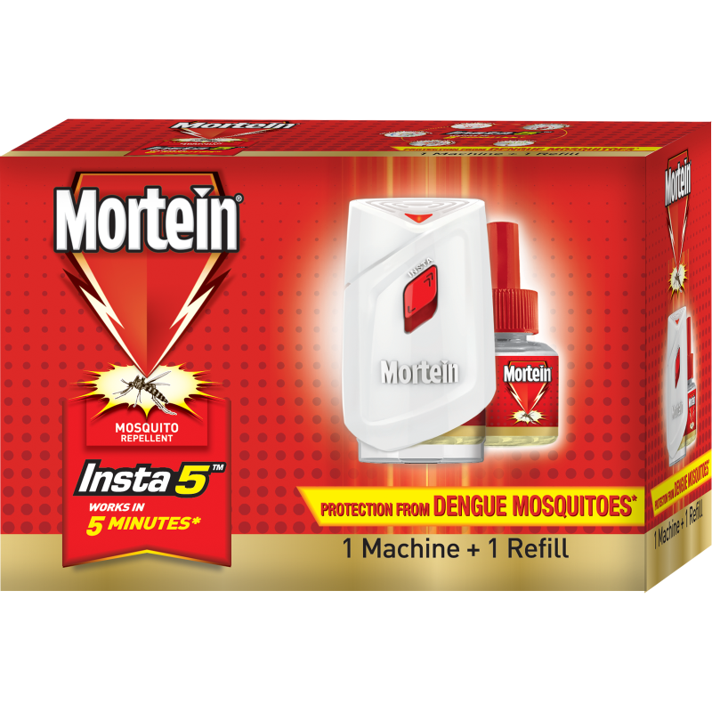 Contains 1 unit of Mortein Insta liquid vaporizer machine and 1 Mortein liquid refill (45ml). Lasts up