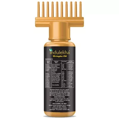 Indulekha Bringha Oil is a proprietary ayurvedic medicine that is clinically proven to reduce hair fall and grow new hair. Enriched with Bringharaj and 11 other herbs, this 100% Ayurvedic oil revives your roots to grow new hair. It's unique and easy to apply straight to the scalp "selfie comb" allows oil to penetrate deep inside the scalp directly, without getting your hands oily. For best results use 3 times a week for 4 months.