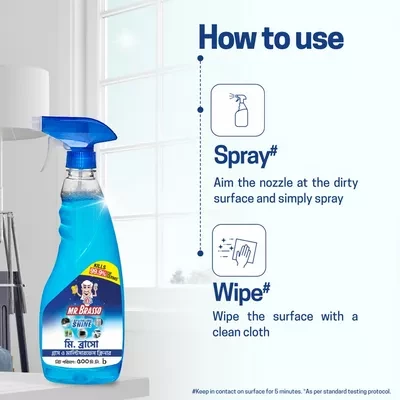 Mr. Brasso Glass and Multisurface cleaner cleans the surface of your Television & other electronic appliances, Computers, Window glasses, Mirrors, Table-tops, Fridge & Kitchen appliances, Vehicle’s Windshield and Laminated furniture.