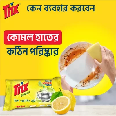 Trix dishwashing bar gives you scratch-free sparkling clean dishes. It’s power-rich thick foam quickly works through the grease stains and unseen food residue bringing your dishes to their incredible best; fresh, shiny & sparking clean! Contains refreshing lemon fragrance to give you a wonderful dish washing experience. With the trusted dishwashing liquid Trix at your side, dishwashing becomes as easy and effortless as it can be. So, make your everyday dishwash a Trix dishwash!
