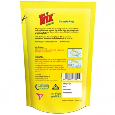 Trix dishwashing liquid’s power-rich thick foam quickly removes grease stains and unseen food residue from the dishes bringing your dishes scratch free & sparkling clean.